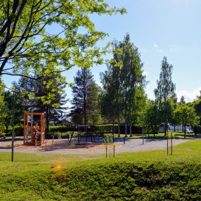 Vanhan leikkipuiston saneeraus Joensuun Mutalassa. Työt aloitettiin puuston kaadolla sekä massojen vaihdoilla leikkialueelle. SItten päästiiin lempipuuhaamme eli uusien leikkikalusteiden asennukseen. Lasten leikkien turvallisuutta lisätään Softex turva-alustojen sekä turvahakkeen asennuksella. Keinut, junat, hiekkalaatikot, kiipeilytelineet, hyrrät ja muut, kyllä kelpaa! Urakkaan kuului myös puiston valaistuksen rakentaminen, nurmikon laitto, sekä puuston istutus. Työmaa viimeisteltiin uuden kevyenliikenteenväylän rakentamisella.