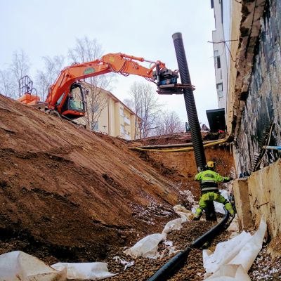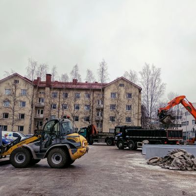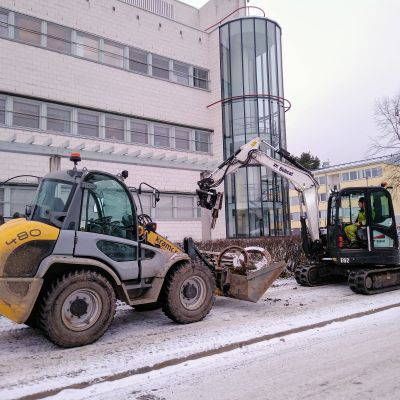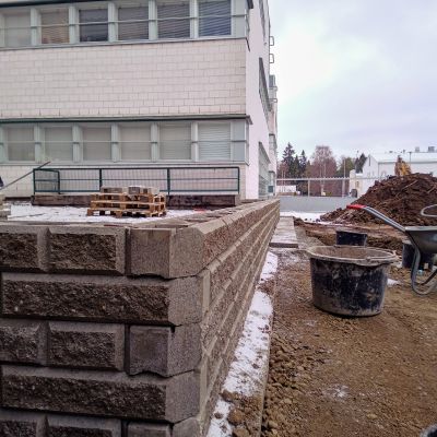 Mavira Oy:lle tuli urakaksi Joensuun virastotalon laaja piharemontti, jonka tilasi Senaatti Kiinteistöt. Työ suoritettiin koko ajan käytössä olleen virastotalon haastavissa olosuhteissa. Työhön kuului rakennuksen sokkelinkuivatus eli salaojitus ja sokkelin vesieristys. Lisäksi runkoviemäreiden uusimista sekä hulevesipumppaamon uusiminen. Kohteen erikoisuuksina oli mm. salaojituksen syvyys suurimmillaan yli neljä metriä, maanalaisen parkkihallin sisällä olleiden pumppaamokaivojen tekniikan uusiminen ja pinnoitus, piha-alueen puurakenteiden ja rautaosien huoltomaalauksia ja laajoja pellityksien uusimisia. Lisäksi teimme mm. kolme kappaletta ulkorappujen saneerauksia lisäten niihin lämmityksen, jolloin talvikäyttö mukavoituu. Ulkorappujen lisäksi teimme kokonaan uuden invaluiskan sekä muurasimme ison määrän muurikivetyksiä ja istutusaltailta. Hitsasimme rappusten ja invaluiskien kaiteet ruostumattomasta teräksestä. Näiden lisäksi uusimme pihavalaistusta ja rakensimme parkkihallin kattokannen päälle viihtyisän oleskelualueen kahvihetkiä varten. Tämäkin laaja ja vaativa urakka toteutettiin ennakkoon sovitun urakka-ajan puitteissa niin kuin Maviralla on tapana.